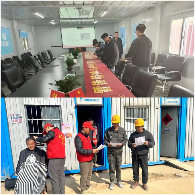 安徽交航第二工程公司團支部開展以“學習雷鋒精神、凝聚精神力量”為主題的觀影活動,并發動青年志愿者為項目工人發放文明宣傳手冊,講解宣傳合肥市民公約(守則),為工人提供義務理發。
