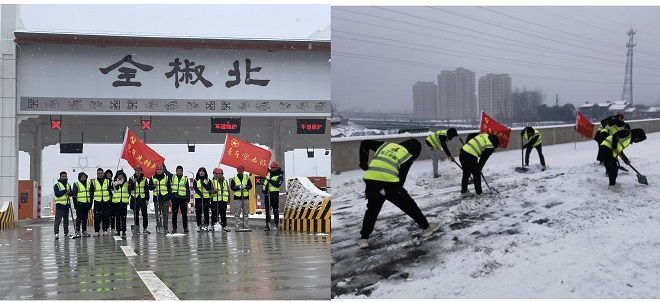 全椒建投成立“青年臨時突擊隊”清掃全椒北互通立交項目上跨合寧高速橋面積雪