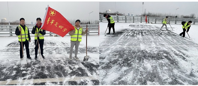 第四工程公司組織青年團員清掃項目部、道路兩旁積雪