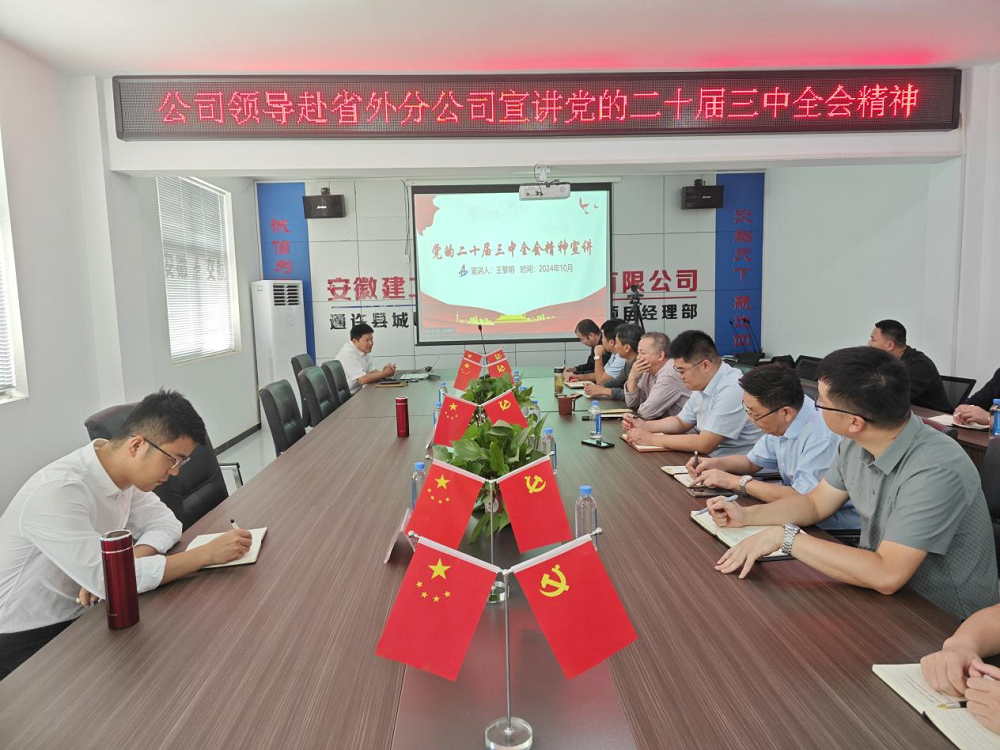 為深入學習黨的二十屆三中全會精神,營造奮進新征程的良好氛圍,確保讓黨的創新理論在基層生根發芽,10月11日下午,公司黨委委員、副總經理、工會主席王黎明赴省外分公司開展黨的二十屆三中全會精神宣講報告會。