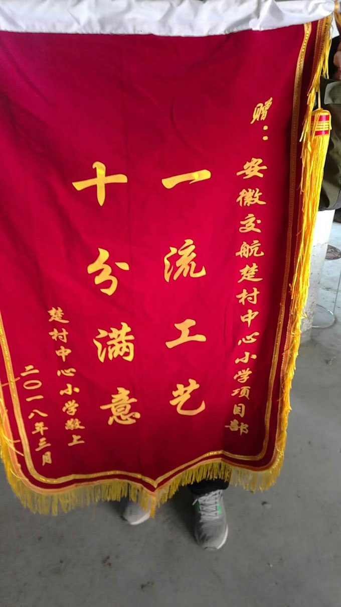 3月16日,蒙城楚村中心小學校長郟峰一行專程趕往安徽交航蒙城楚村中心小學項目部,向項目部贈送印有“一流工藝,十分滿意”的錦旗,并對項目部的辛勤付出表示由衷的感謝。